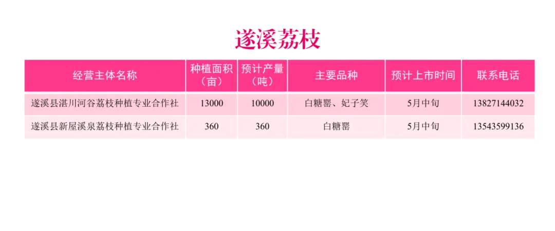 主要品种:妃子笑、鸡嘴荔、白糖罂、桂味、黑叶